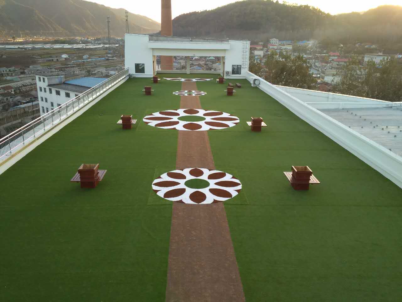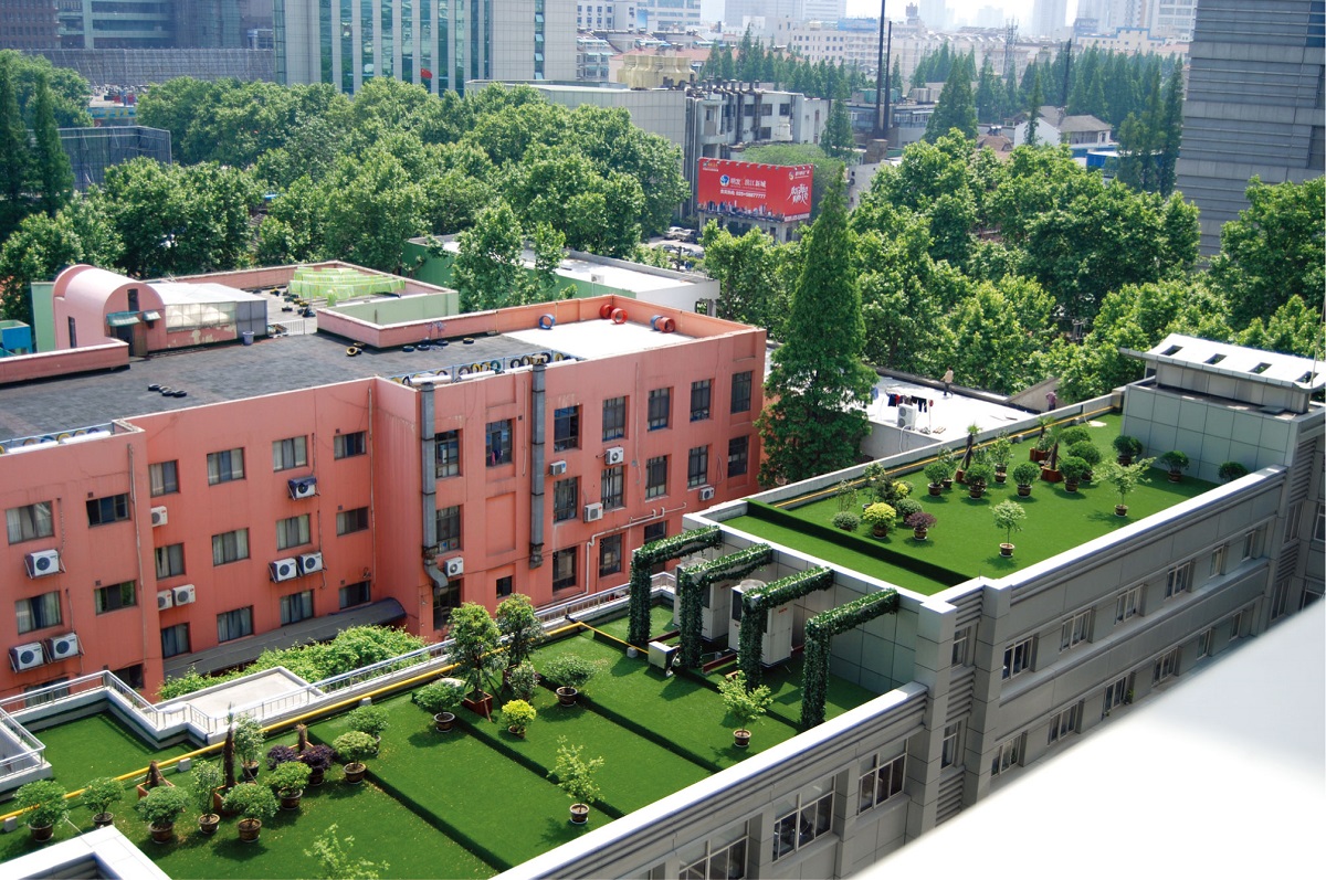 隨著城市的發(fā)展,人們對(duì)建筑的美觀度要求越來越高,不少的屋面、樓頂也有了綠化的需求,共創(chuàng)休閑草外觀仿天然,并且有卓越的抗老化性能,使用多年仍不易褪色、不粉末化,十分適用于屋頂綠化。